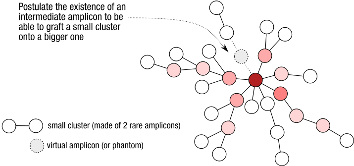 (such as the historically used 3%). It iteratively aggregates sequences that differ by d nucleotides: if a path of sequences with d differences between pairs